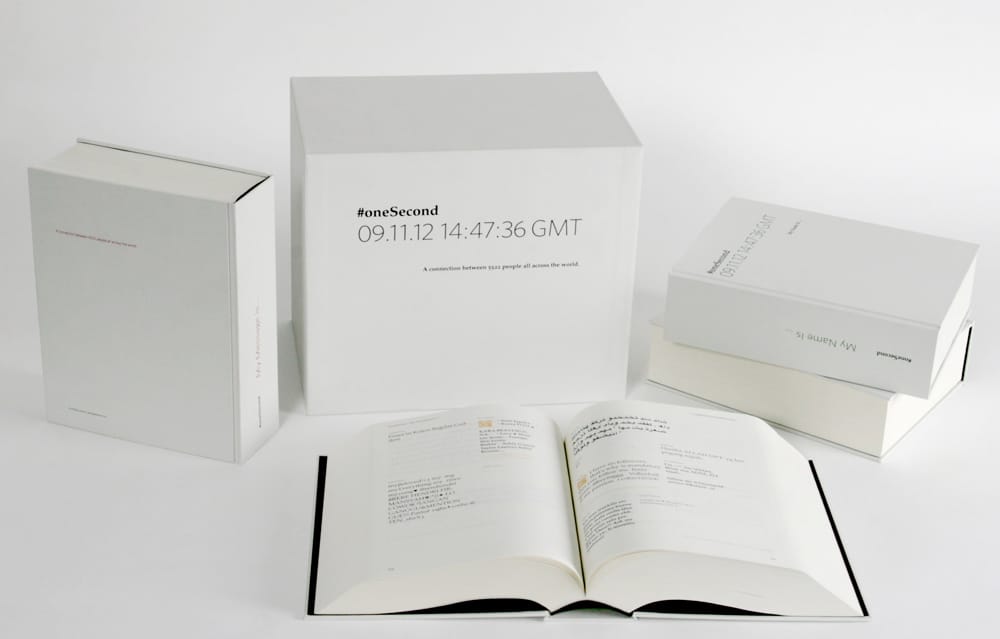 Dat gegeven inspireerde Philip Adrian om een boek uit te geven van één seconde op Twitter. Op 9 november 2012 om 14.57 lokale tijd maakte Adrian een dump van alle tweets in die seconde. Hij had mazzel, want in plaats van de gebruikelijke 7000 tweets, werden er op dat moment ‘slechts’ 5522 tweets geplaatst.