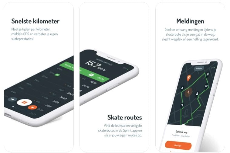 Sprint is een app die 100 procent is afgestemd op schaatsers en skaters. Deze app is gemaakt door de KNSB en wil zoveel mogelijk veilige routes in kaart brengen om over te skaten. Je kunt zelf aangeven als het wegdek slecht is, er een helling is of als er een gat in de weg zit. Daarnaast kun je hotspots toevoegen en je favoriete routes opslaan en delen met anderen.