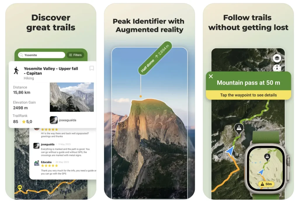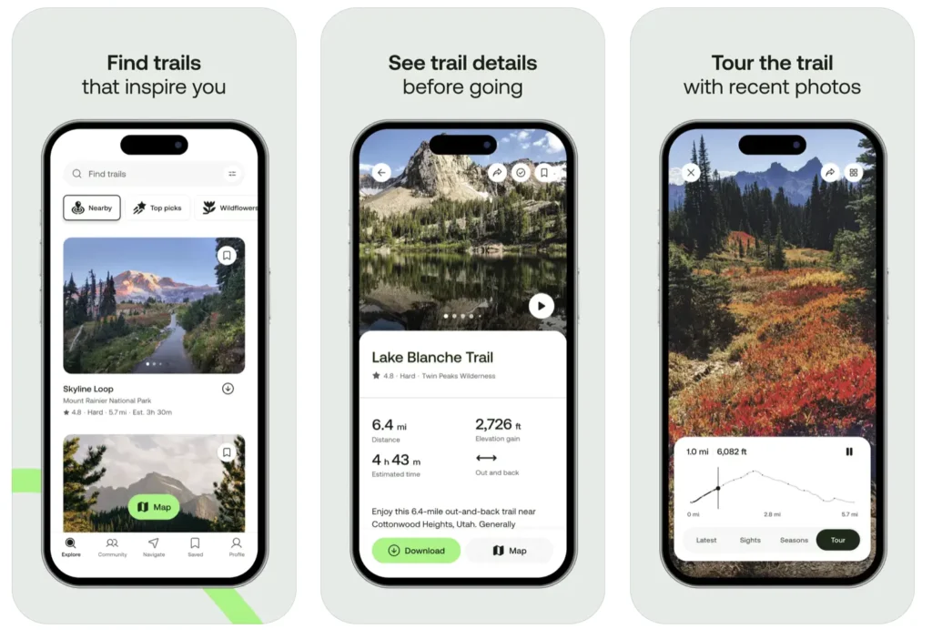 AllTrails is wereldwijd bekend als route‑verzamelaar. Je kunt eenvoudig routes zoeken op regio, lengte of moeilijkheid, en beoordelingen inclusief foto’s bekijken.