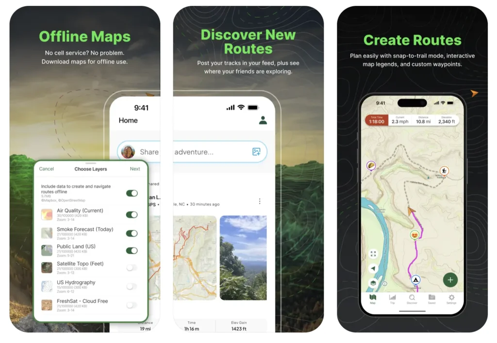 Wikiloc is sterk in delen en ontdekken: gebruikers uploaden hun eigen trails met metadata zoals afstand, hoogteprofiel en foto’s. Zelfs in de gratis variant kun je al gebruik maken van offline trails.