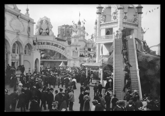 De eerste roltrap was een kermisattractie. Op de kermis van Coney Island in New York introduceerde Jesse W. Reno in 1896 de roltrap. Pas vele jaren later werd het van attractie een transportsysteem om moeiteloos van etage te wisselen. Maar we waren al mee bekend. Desondanks bleef de eerste roltrap in de Bijenkorf een attractie, maar dat veranderde snel.