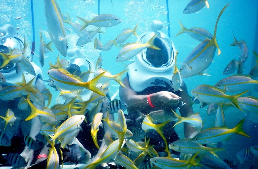 Is het de eerste keer dat je gaat duiken en heb je geen brevet? Ga dan mee met een tour onderwaterwandelen met Sea Trek. Je krijgt een luchtdichte helm waarmee je onder water kunt wandelen om zo alle pracht en praal te zien van Little Bay.
