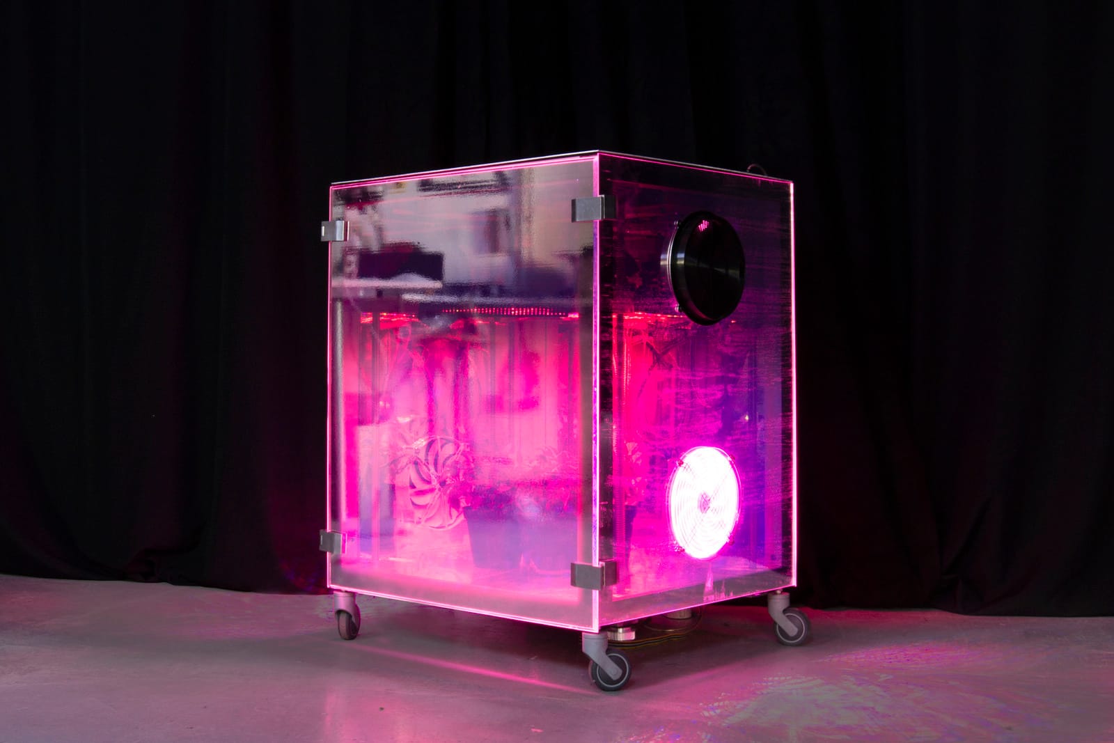 Het systeem maakt gebruik van een Arduinobord, een automatische “lichtmotor”, water en voedingstanks, ventilatoren en sensoren (luchtvochtigheid, temperatuur en pH). Met behulp van een app kun je alle instellingen vervolgens handmatig instellen of met behulp van een crowdsourced groeiplan.