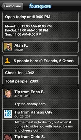 Waar Glympse je in staat stelt om gemakkelijk je locatie te delen binnen een gesloten netwerk, brengt Foursquare natuurlijk een sloot aan hyperlokale informatie met zich mee.
