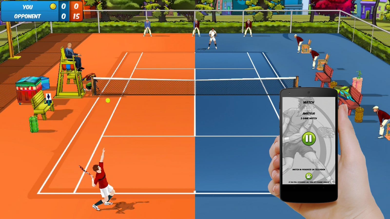 Met je smartphone kun je vervolgens ballen terugslaan en verplaatsen, zoals we dat gewend zijn bij de game voor de Wii. De app, die eerder al verscheen voor iOS, biedt gebruikers de mogelijkheid om te tennissen tegen de computer of tegen vrienden.