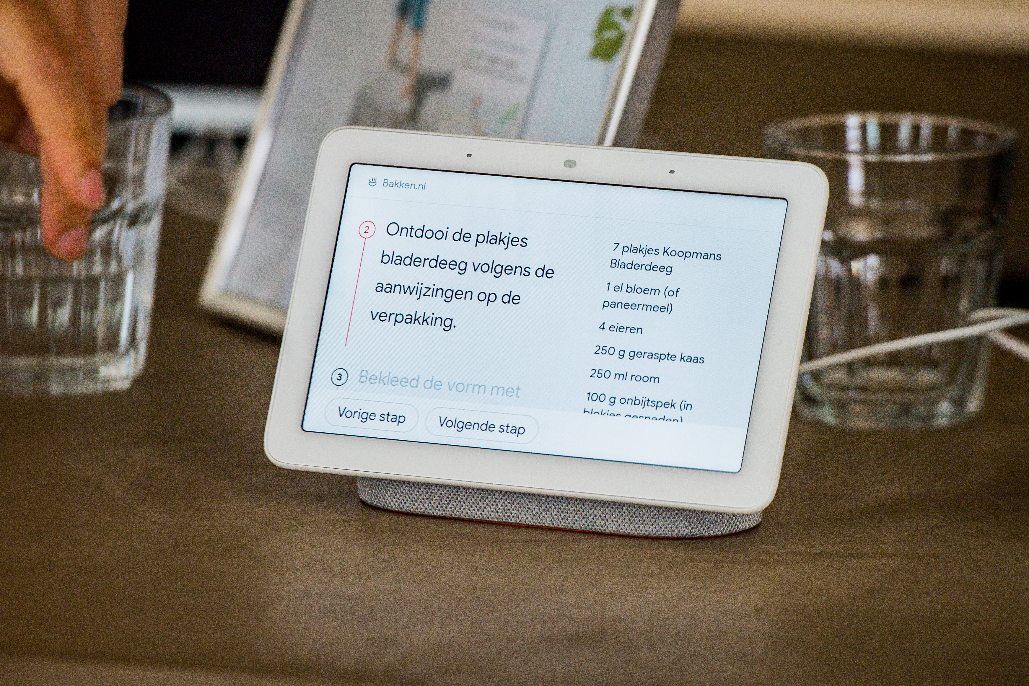 [tweetable font-size=”110%” quote=”Het geluid van de Nest Hub is prima voor kort luisterwerk of een snel belletje” author=””]En dat geluid, dat is verder helemaal prima. De Nest Hub heeft intussen een vaste plek verworven op ons keukeneiland, een prima plek om je te helpen in de keuken en elke ochtend even de samenvattingen van het nieuws voor te laten lezen. Qua geluidskwaliteit zit de slimme speaker een beetje tussen de Home en de Home Mini in. Prima voor het kort werk of een snel belletje via Duo, te weinig om een feestje op te bouwen of je favoriete podcast op af te luisteren.