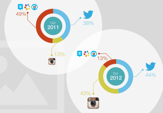 Bij het analyseren van de foto’s ontdekte Skylines een aantal opvallende zaken. Bleek bij de start in mei 2011 nog dat bedrijven als Twitpic, yFrog en Lockerz de grootste spelers waren als het ging om het posten van foto’s, anno nu is Instagram samen met Twitter de baas.