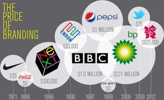 Uiteraard zijn dit de wat goedkopere verhalen van topmerken. Een paar jaar geleden was Pepsi nog meer dan $1 miljoen kwijt aan hun nieuwe logo, terwijl in 2008 BP liefst $221 miljoen moest aftikken voor hun rebranding. Trendland heeft nu alle cijfers – verkregen via Stock Logos en Business Insider – op een rijtje gezet in een tamelijk simpele, maar desalniettemin amusante infographic.