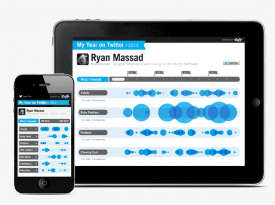 Maar nog veel cooler is de persoonlijke breakdown die Twitter aanbiedt in samenwerking met de boys van Vizify. Welke onderwerpen sprak je het meest over en welke hashtags waren duidelijk je favoriet. Ook leuk: welke tweet leverde je uiteindelijk de meeste respons in replies, RT’s of nieuwe volgers op en welke volger is je meest loyale Twitterbuddy?