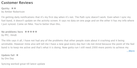 Eerder vandaag kondigde Nike de update van de Nike+ FuelBand app aan. In de nieuwe versie (1.3) een verbeterde en versnelde sync, aldus de beschrijving in de App Store. Geen woord over de haperende koppeling met Path of de totale willekeur van meldingen en animaties. Het lijkt wel of Nike het niet wil realiseren: technology can be ubiquitous, user experiences can be truly unique.