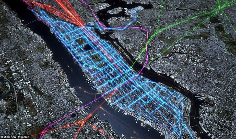 Update: Jan Willem Tulp (@JanWillemTulp) wees me er terecht op dat de gebruikte afbeelding bij dit bericht afkomstig is van de mensen van 422 South, een animatiebedrijf dat in opdracht van de Amerikaanse omroep PBS datavisualisaties heeft gemaakt voor het programma America Revealed. Leuk weetje: 422 South (@422South) is betrokken geweest bij het geroemde Nederland van Boven van de VPRO .