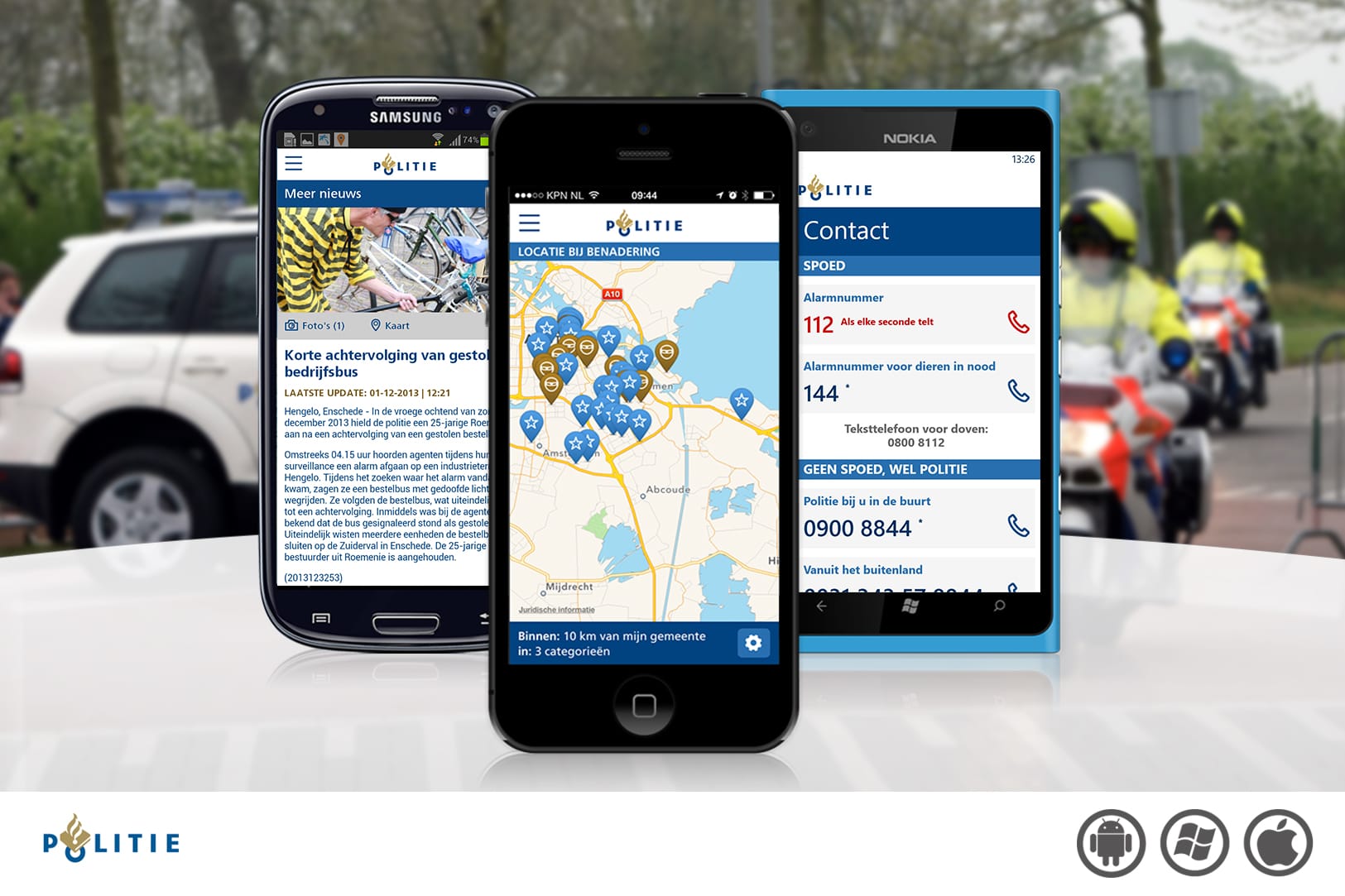 De app van de politie is beschikbaar voor iOS, Android en Windows.