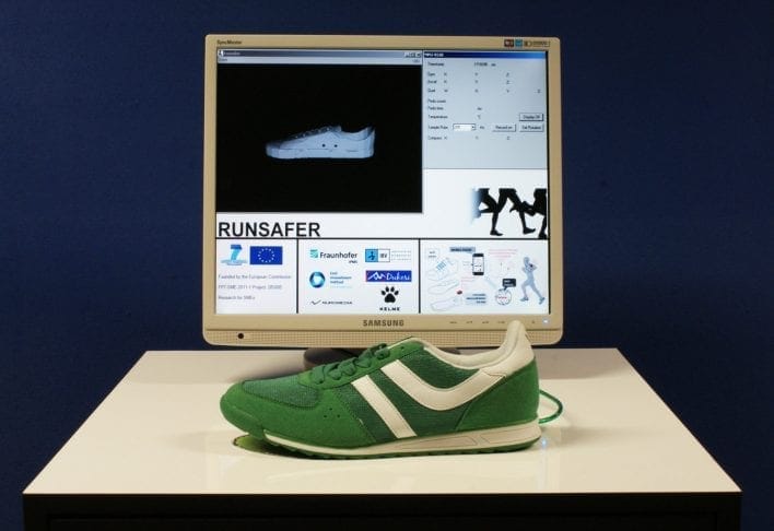 Apple heeft het patent, maar een Duits onderzoekscentrum heeft hem al klaar: de slimme schoen. In dit geval een hardloopschoen, die zijn drager waarschuwt dat zijn of haar loopbewegingen blessures kunnen veroorzaken.