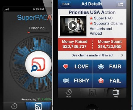 Eigenlijk zou je Super PAC kunnen zien als De Shazam Stemwijzer. De nieuwe app van MIT’s Media Lab gebruikt geluidsherkenning en een database van “politieke supporters” om inzichtelijk te maken hoe waarheidsgetrouw het fragment daadwerkelijk is. Daarnaast verwijst de app gebruikers door naar onafhankelijke sites om standpunten te verifiëren.