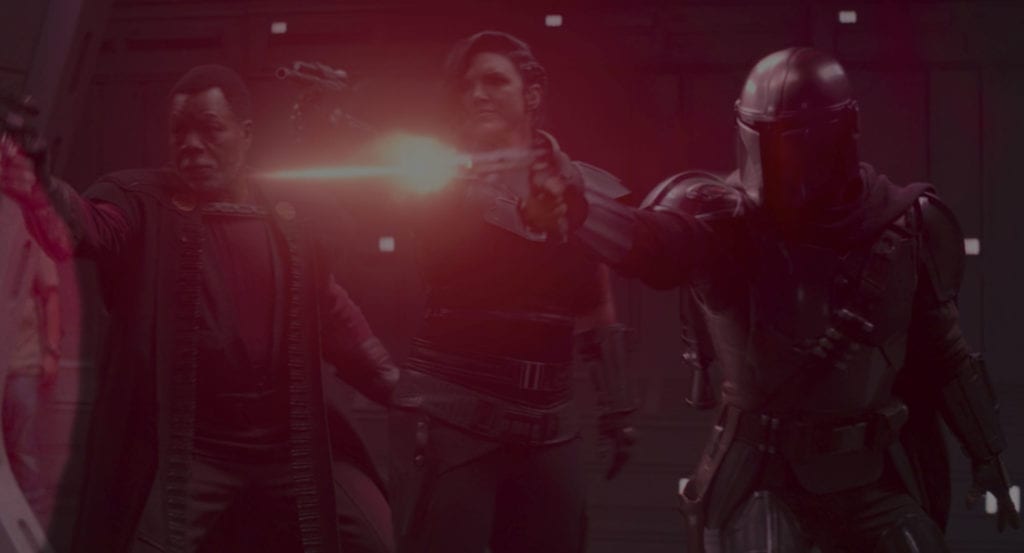 Aan het eind van de aflevering krijgen we nog even wat serieuze Darth-vibes van Moff Gideon, die een tracker in de Razor Crest heeft weten te planten.