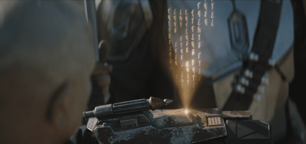 Aan het eind van de uitzending toont Boba Fett nog een hologram dat in zijn harnas geprogrammeerd zit, dat moet bewijzen dat het van hem is. Misschien was je – net als ik – benieuwd hoe lang het zou duren voor het Internet de vreemde taal in het hologram had vertaald en het antwoord is: niet lang.
