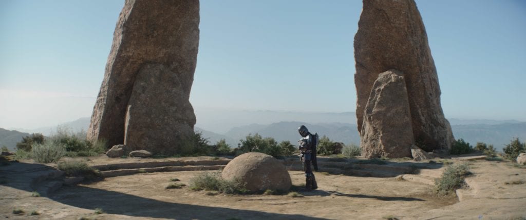 Als Din Djarin uiteindelijk voor het eerst voet aan de grond zet, kijkt hij eens om zich heen. De Seeing Stone en de Jedi-tempel hebben duidelijk betere tijden gekend. Toch is een deel van de ruïne duidelijk in de oude Jedi-stijl die we bijvoorbeeld zagen in de game Knights of the Old Republic.
