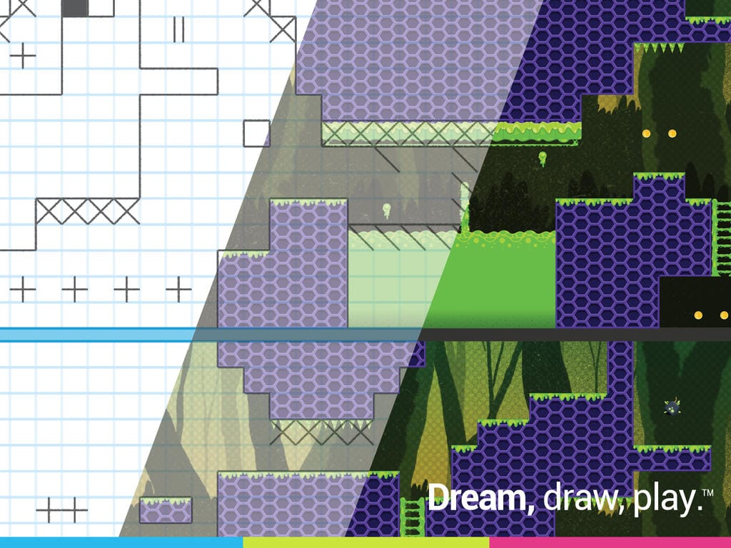 Daar komt echt verandering in met een project genaamd Pixel Press dat vorig jaar meer dan honderdduizend dollar heeft opgehaald op Kickstarter. Pixel Press gaat een serie van apps maken met als ambitieus doel om jouw tekeningen om te zetten in echte videogames. Je tekent simpelweg een idee op speciaal ruitjespapier, maakt een foto met je iPad en importeert dan je creatie in een editor waar je wat visuele aanpassingen kunt doen en vijanden kunt toevoegen.