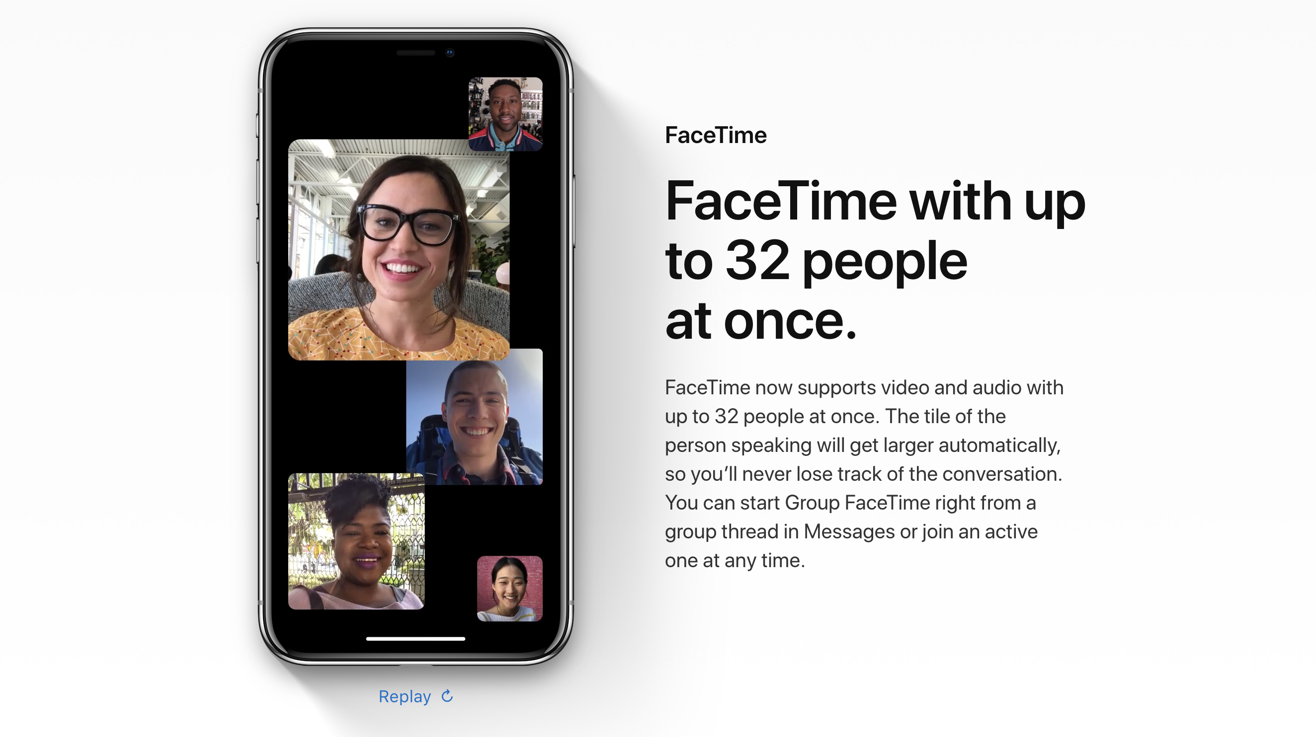 Eindelijk kun je facetimen met een groep mensen. Dankzij Group Facetime kun je tot wel 32 mensen toevoegen aan één Facetime call. Ideaal voor videoconferencing is ook dat de Facetime app automatisch herkent wie er aan het woord is. Zijn of haar videofeed wordt dan automatisch groter weergegeven, zodat je altijd goed ziet wie er aan het woord is.