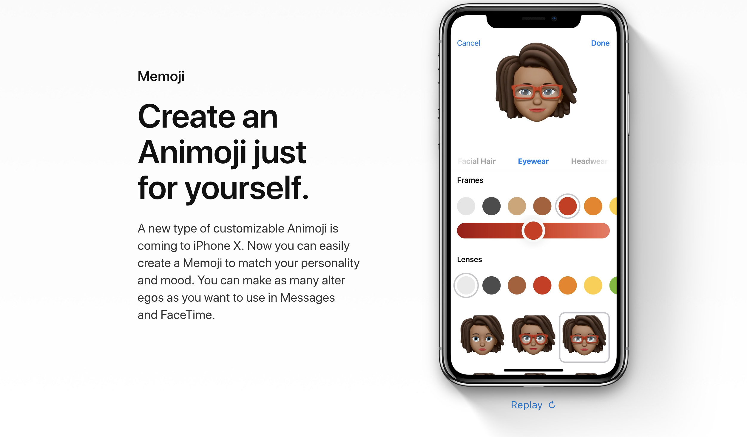 In iOS 12 maak je straks je eigen emoji: Memoji. Niet alleen kun je straks een perfect lijkende persoonlijke emoji maken, met behulp van de gezichtsherkenningssoftware in de nieuwe iPhones kun je deze emoji ook live animeren. Je hoeft daarvoor alleen maar een gekke bek in de camera te trekken: De camera maakt de foto en je Memoji is gelijk opgeslagen.