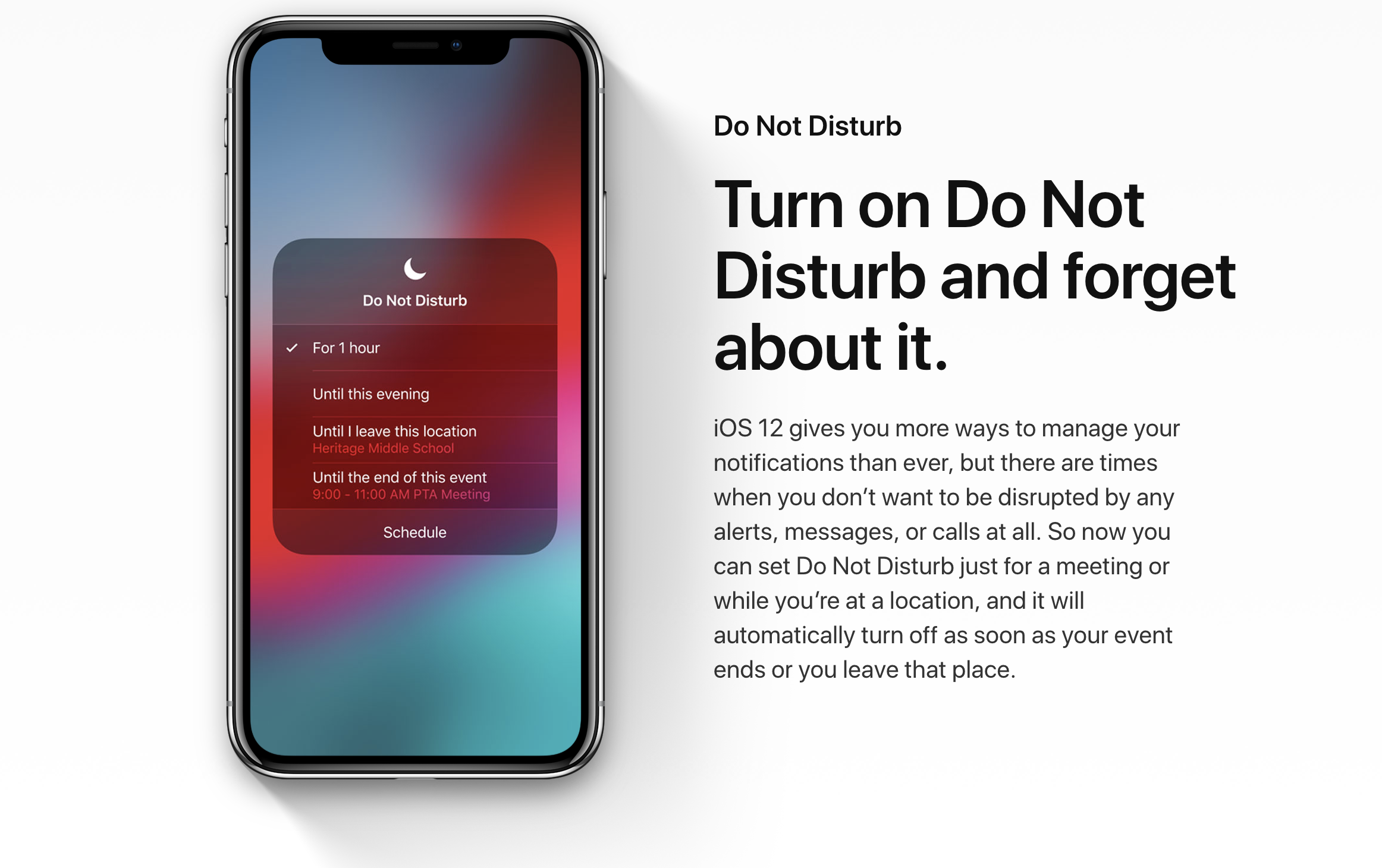 Word jij ook zo moe van het wakker worden met 56 nieuwe WhatsApp berichten op je homescreen (pro-tip: zet je WhatsApp notificaties uit)? Apple gaat dat probleem (deels) oplossen met een nieuwe functie: Do not disturb at night. Met deze functie komen er ’s nachts helemaal geen pushnotificaties binnen waarvan je onverhoopt wakker kunt worden. En als je ’s ochtends opstaat overlaad je iPhone je niet gelijk met al deze gemiste berichten: Er is een clean wake-up scherm in beeld, totdat je klaar bent om de confrontatie met je werk weer aan te gaan.